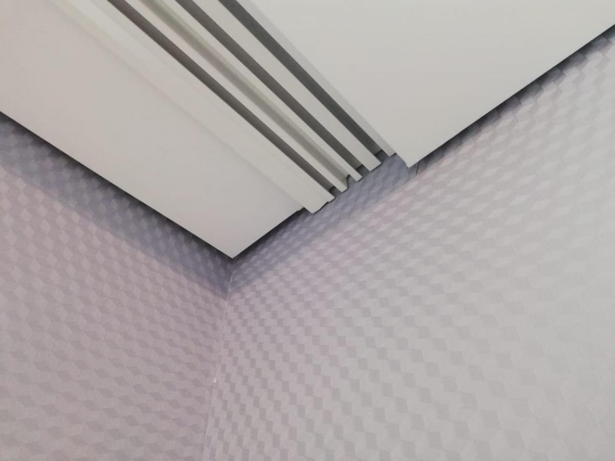 Толщина шва составляет всего 0.2 мм, поэтому он совсем незаметен. Ширина наших полотен достигает 6 метров, если ширина помещения больше, шов будет в любом случае. Наши монтажники выполняют данный вид работ максимально аккуратно, тем самым делая шов почти невидимым.