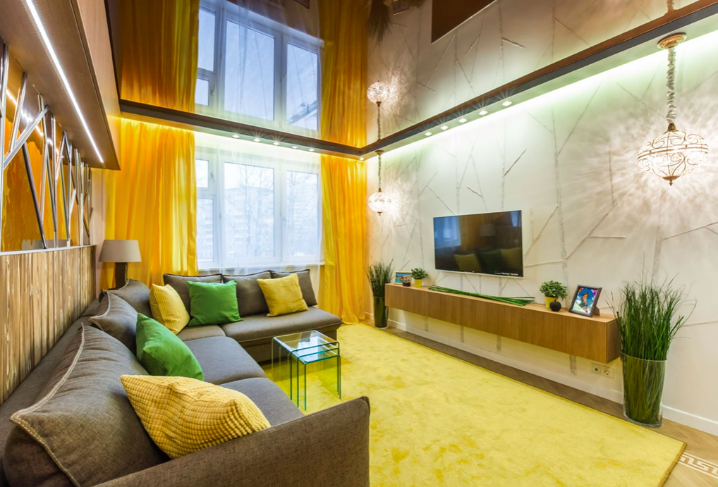 Натяжные потолки можно установить в любых помещениях: на кухнях, в ванных комнатах, спальнях или гостиных. Натяжной потолок не боится помещений с повышенной влажностью. Можно устанавливать на любой стадии ремонта